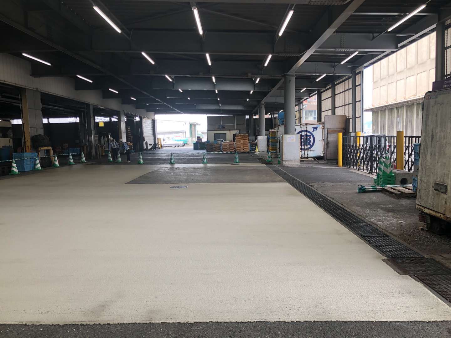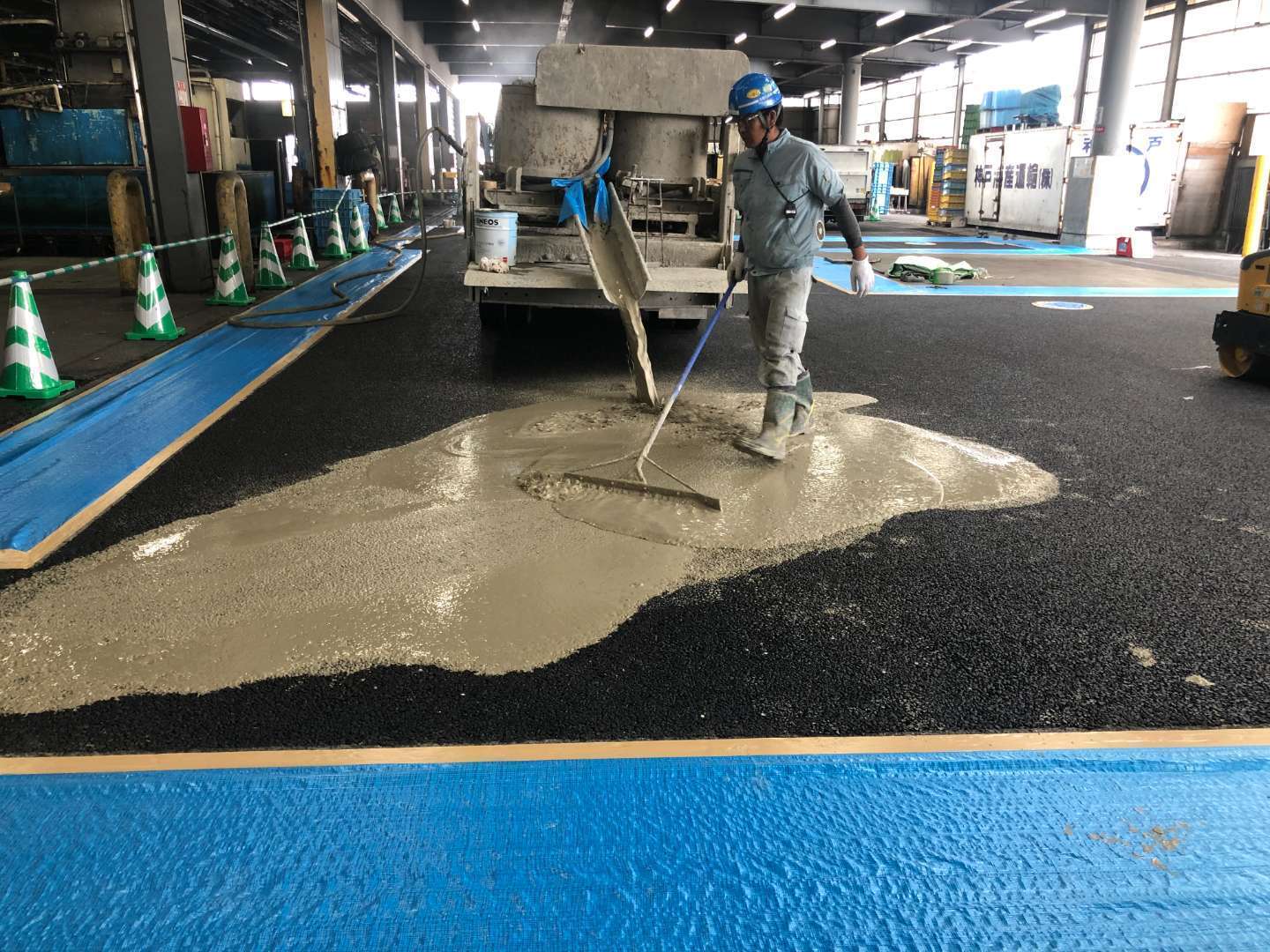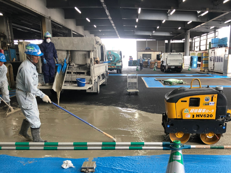 商業施設 半たわみ性舗装 神戸市内の卸売市場での半たわみ性舗装 【施工内容】神戸市内の卸売市場にて、重車両の通行による舗装の劣化改善のため、半たわみ性舗装をおこないました。大型車両の通行が多い環境でも路面変形を抑えられる構造とし、市場の営業に配慮しながら工程を調整して施工。長期的な耐久性と安全性を確保しました。 場所 兵庫県神戸市 前の施工事例 インフラ関連 摩耶海岸通歩道橋の舗装修繕工事 1 / 1